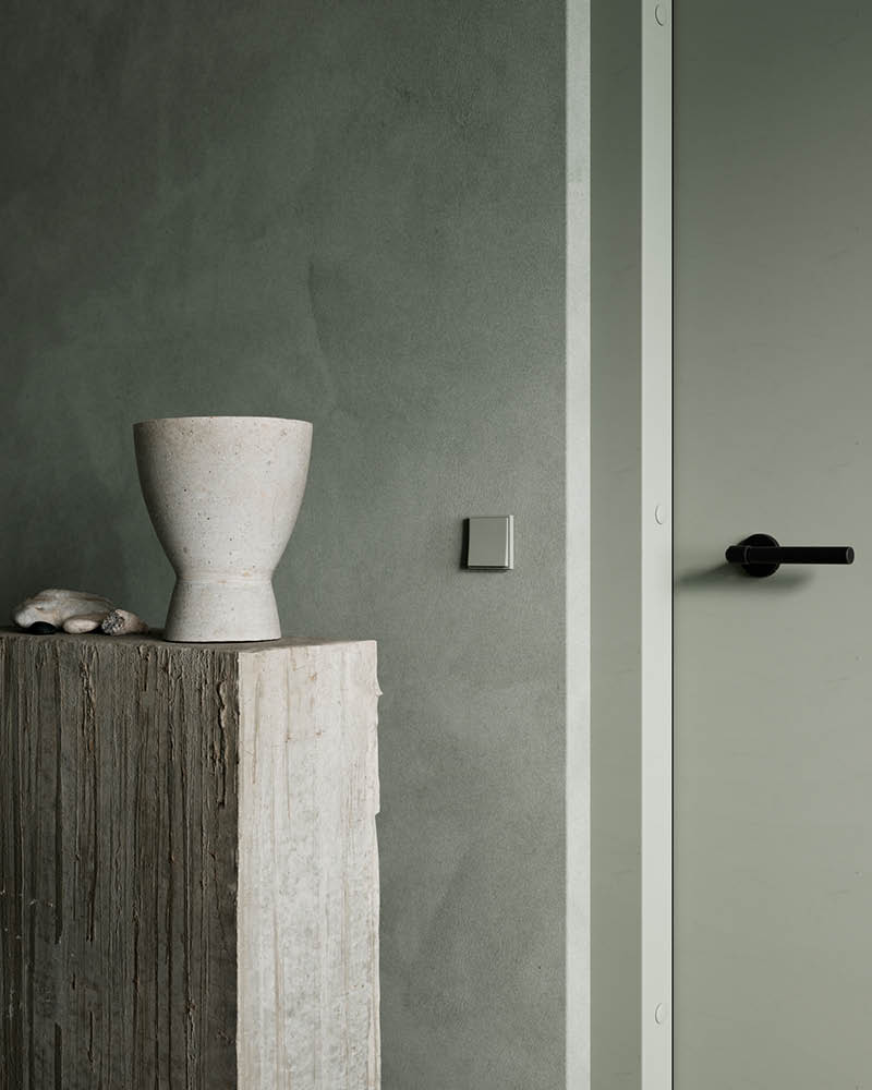 Sist, men ikke minst, anbefaler vi å tenke på gulv, lister og dører. Ofte kan det virke forstyrrende med hvite detaljer til dype, flotte farger. Dette kan med andre ord forstyrre helheten man prøver å skape. I mange tilfeller gir listverk i samme farge som veggen det lekreste resultatet. Interior High Finish malingen fra Flügger er en slitesterk finishmaling som er perfekt til denne jobben. Malingen kan blandes i tusenvis av flotte farger, inkludert alle KABRIC fargene. Velg mellom glansgrad 5, 20, 50 og 90, avhengig av dine preferanser.