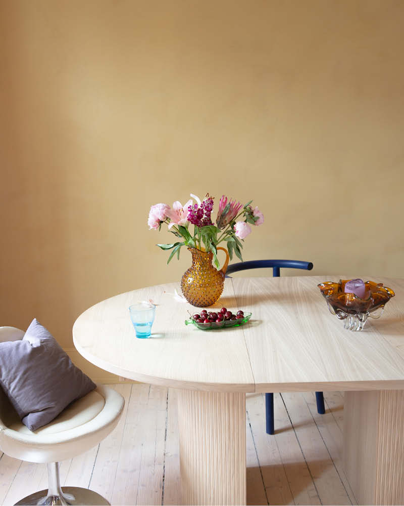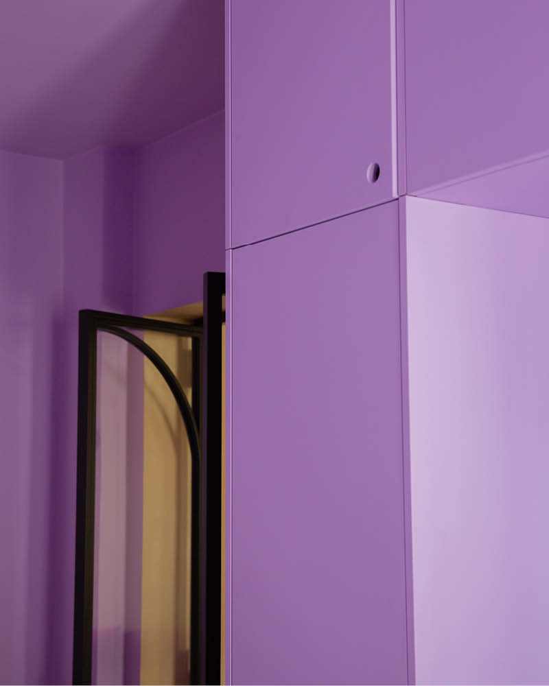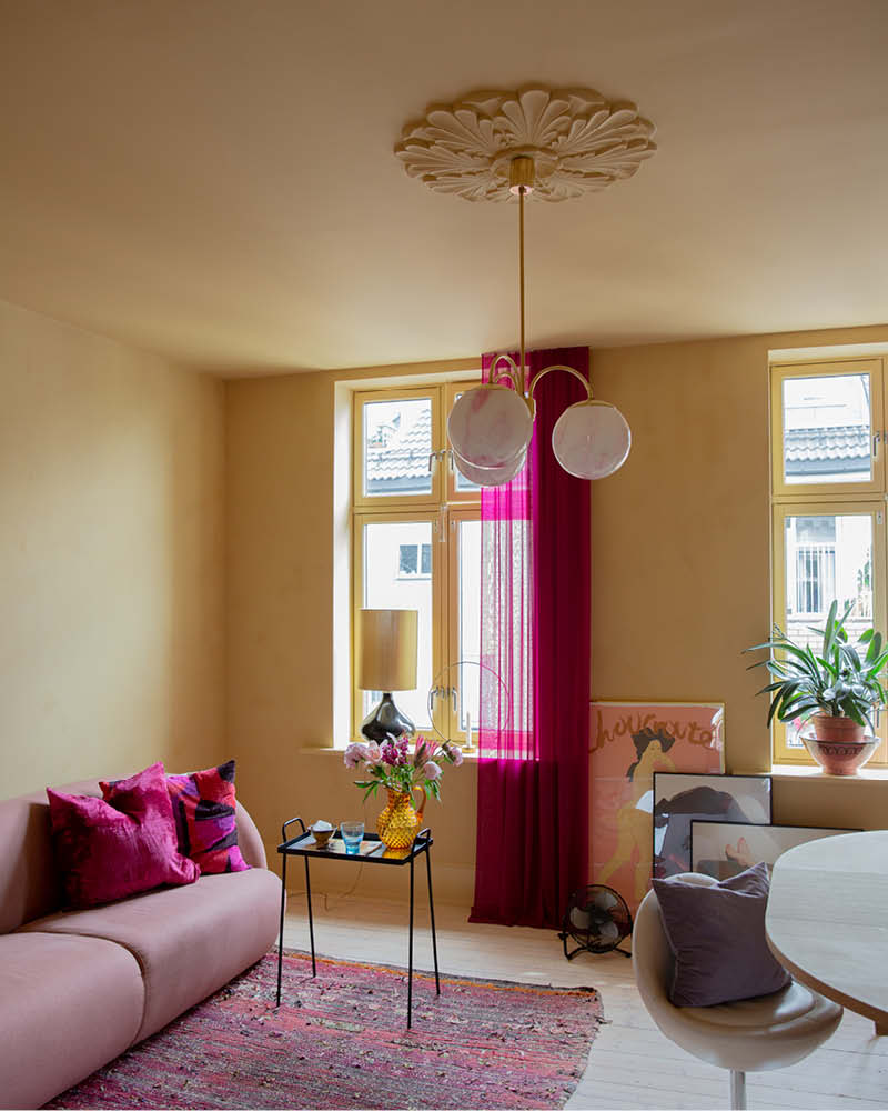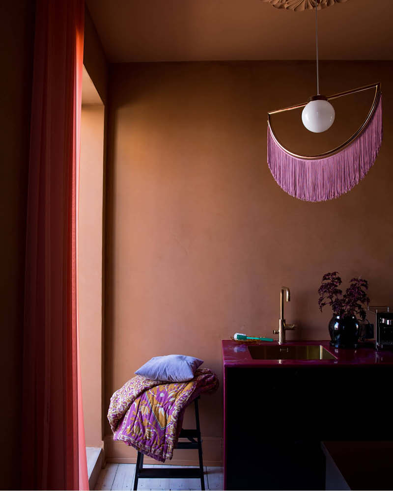 “En skal alltid bruke hjertet og ikke hodet når en velger ut farger for hjemmet”, sier hun. De kalde purpur og lavendel lilla tonene er herlige kontraster til både