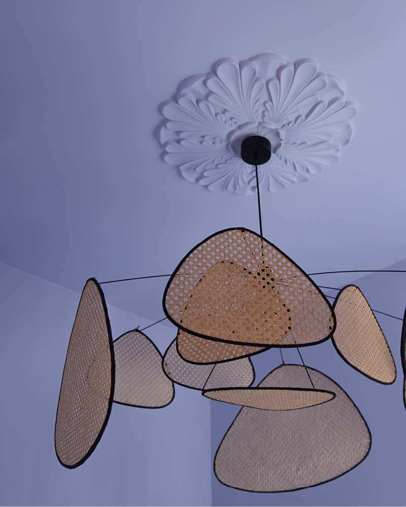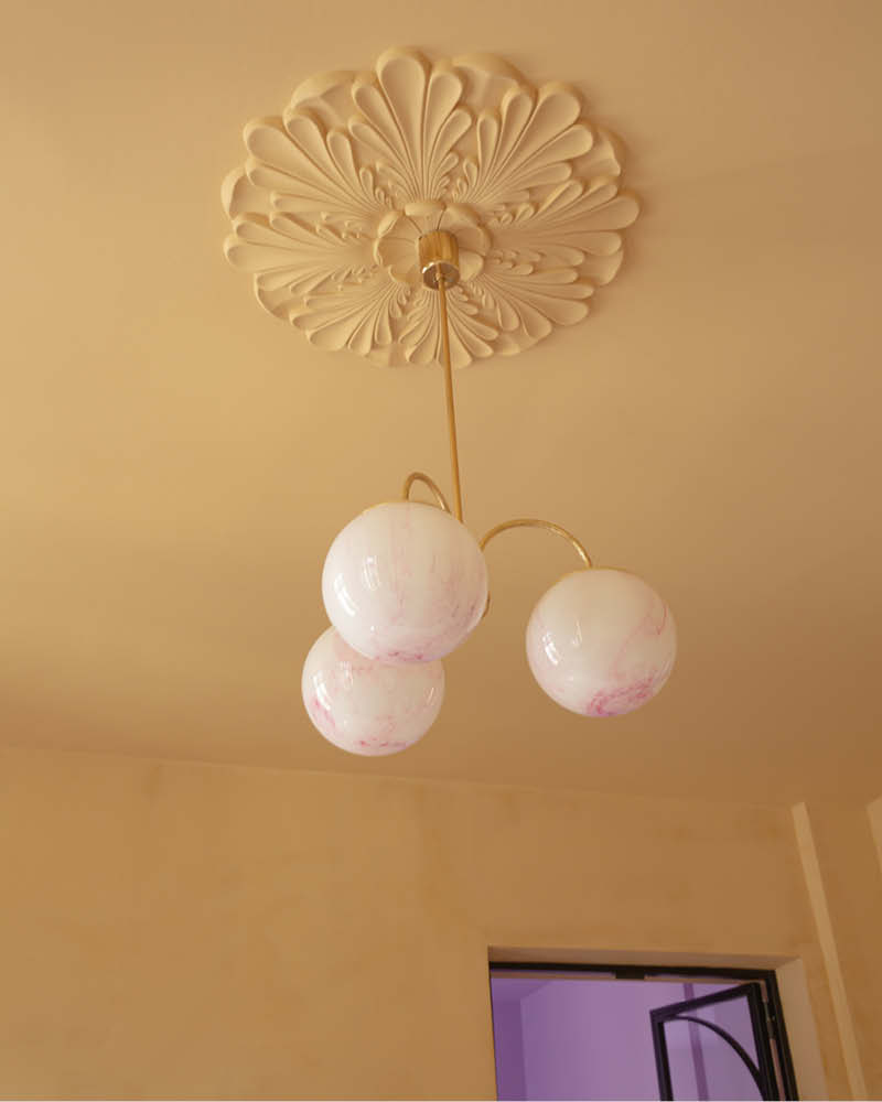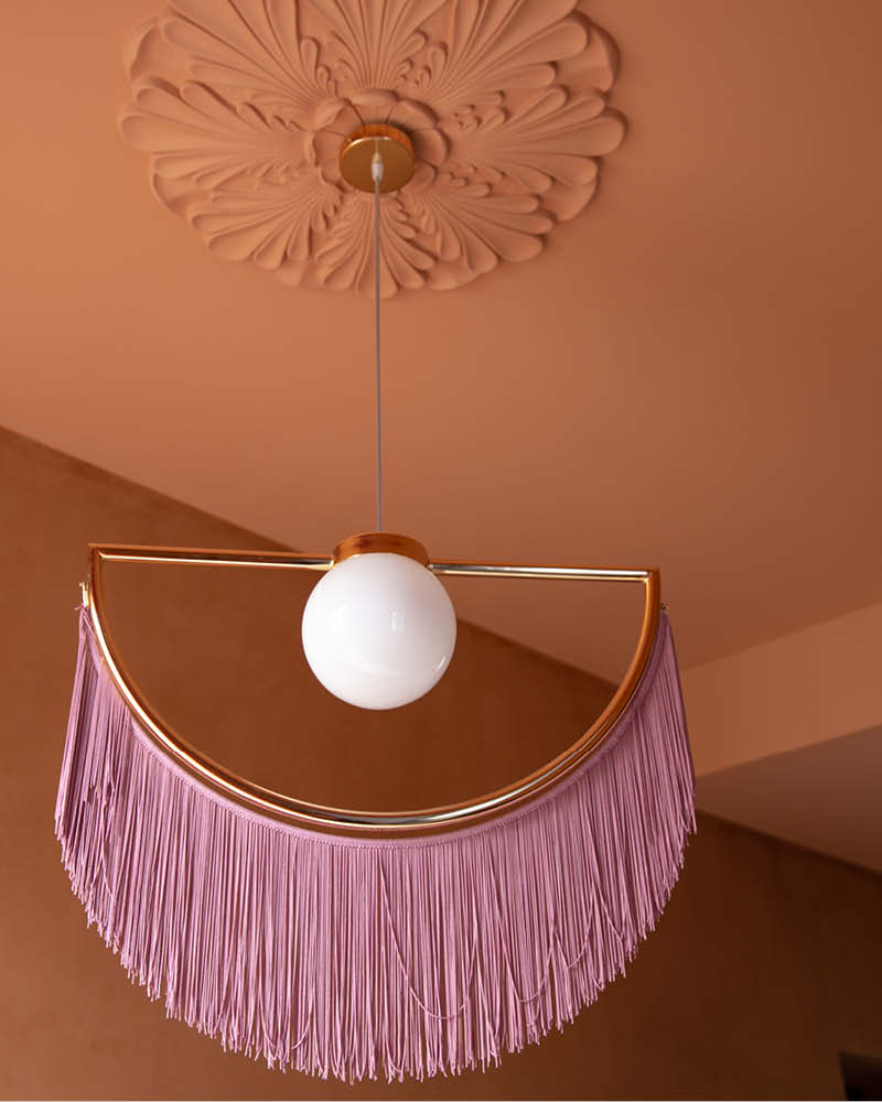 I taket på stue og kjøkken har hun scannet fargeprøver og funnet tilsvarende fargekode for å gi det hele et eksklusivt og helhetlig uttrykk. Taket i leiligheten er malt med