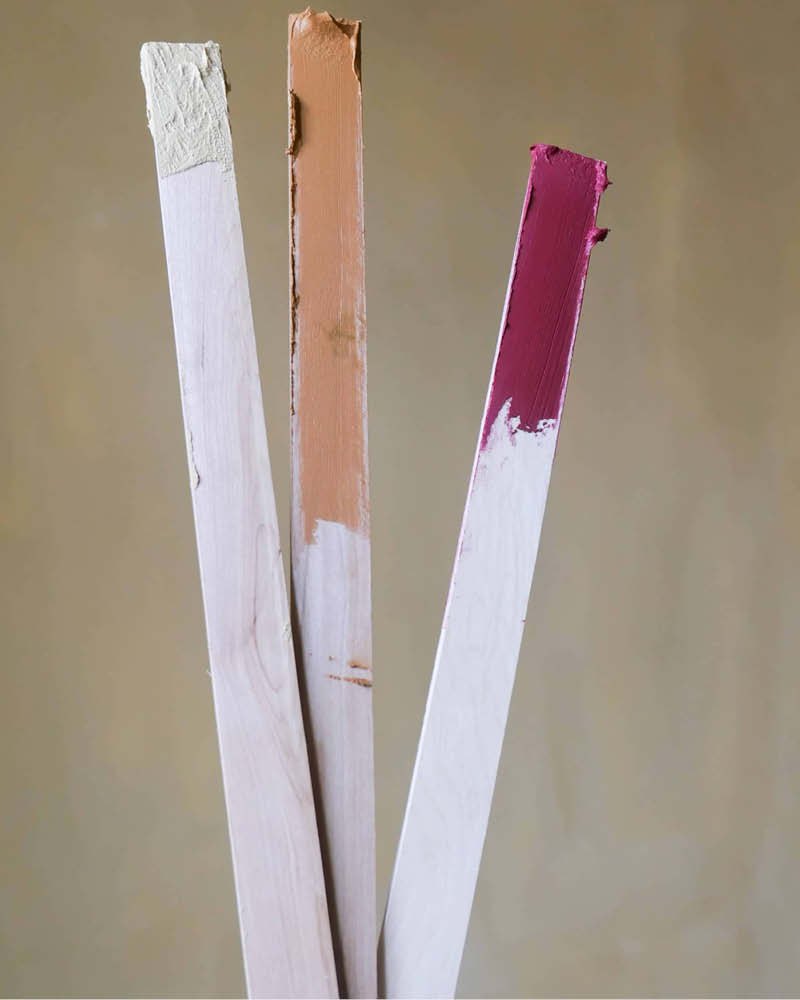 fargede sparkelen KC14 i fargene Mustard, Warm Terracotta og Burgundy, og synes strukturen til produktet gir et totalt nytt uttrykk i forhold til malte overflater.